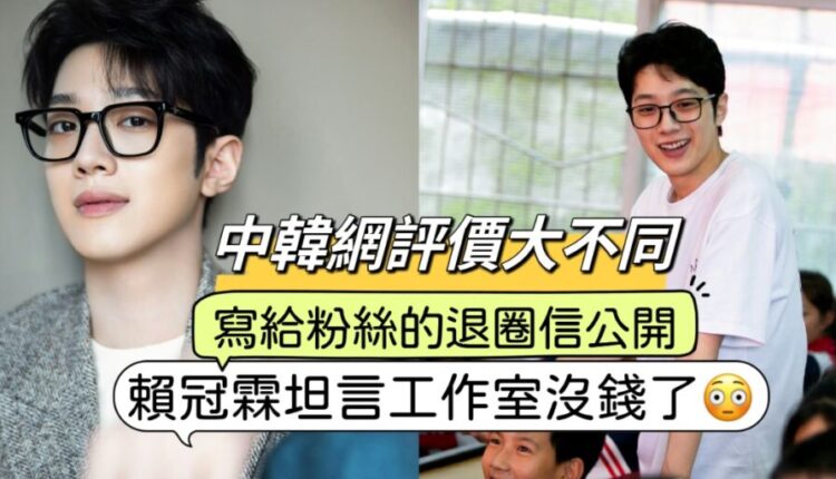 賴冠霖退圈信公開!坦言工作室沒錢了!「無數次從噩夢中醒來!」中韓網友評價很極端!