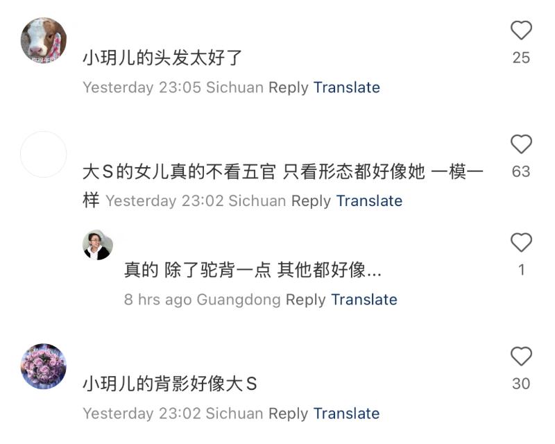 網友們都十分保護孩子們,沒有公開孩子的正臉,不過網友們看了照片,紛紛表示小玥兒看起來真的好像媽媽大S!