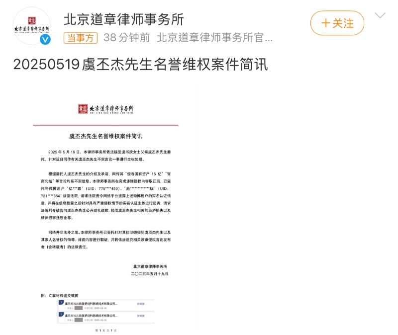 隨著爭議,虞書欣父親在19號晚間發文,表示網絡指控皆不屬實,將採取法律途徑追究👇
