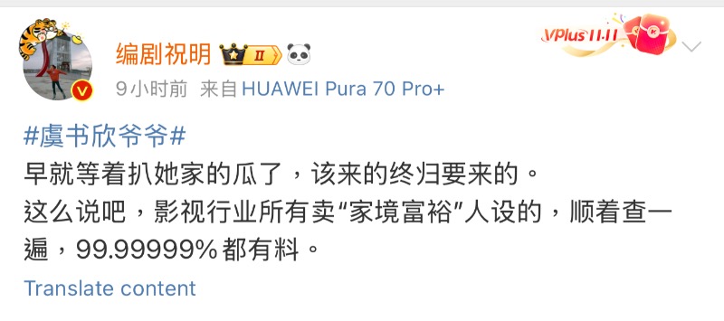 曾寫了《旋風少女》的編劇祝明也下場發文,表示「早就等著扒她家的瓜」,還要求徹查娛樂圈「家境富裕」的所有藝人👇