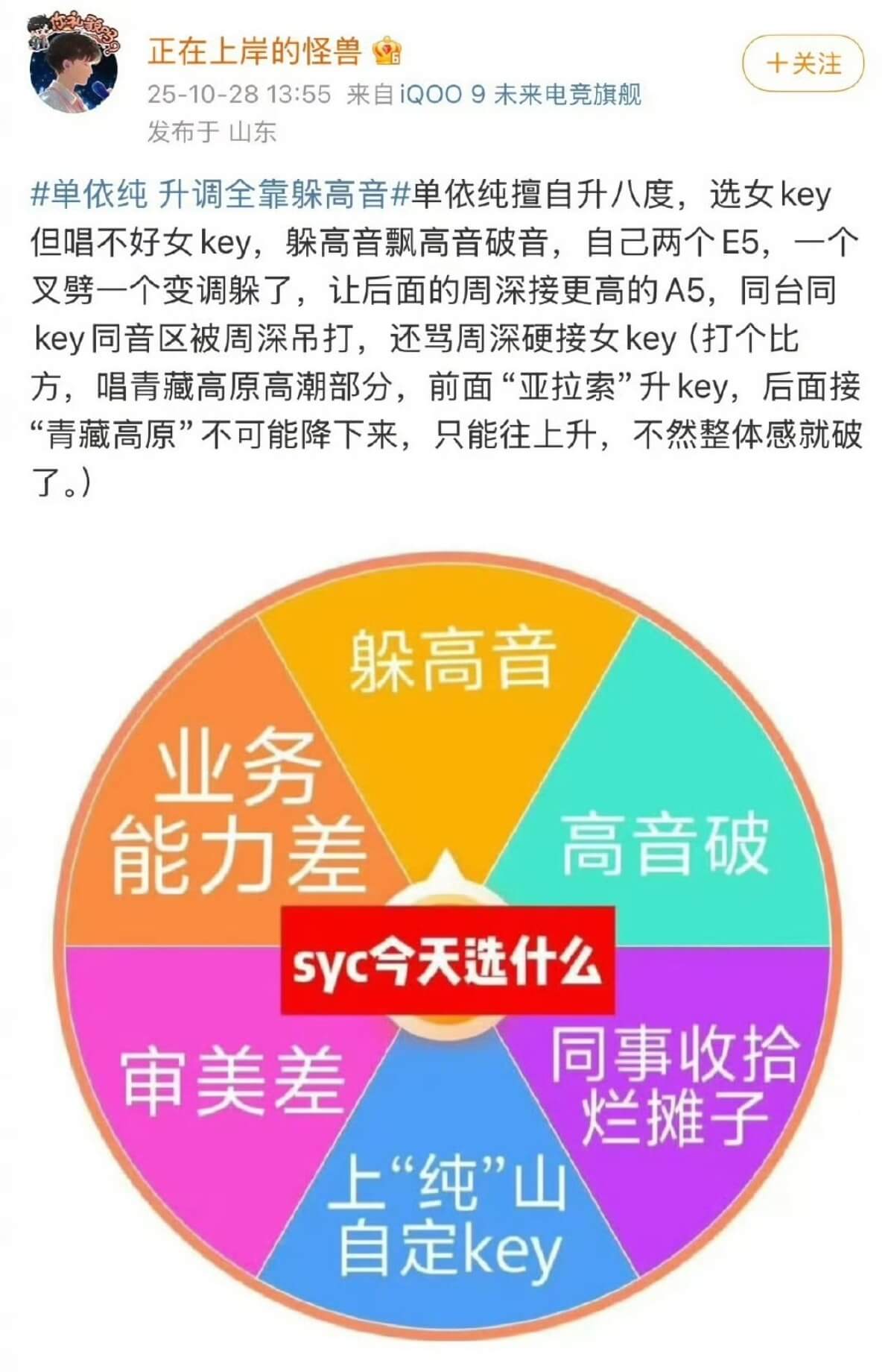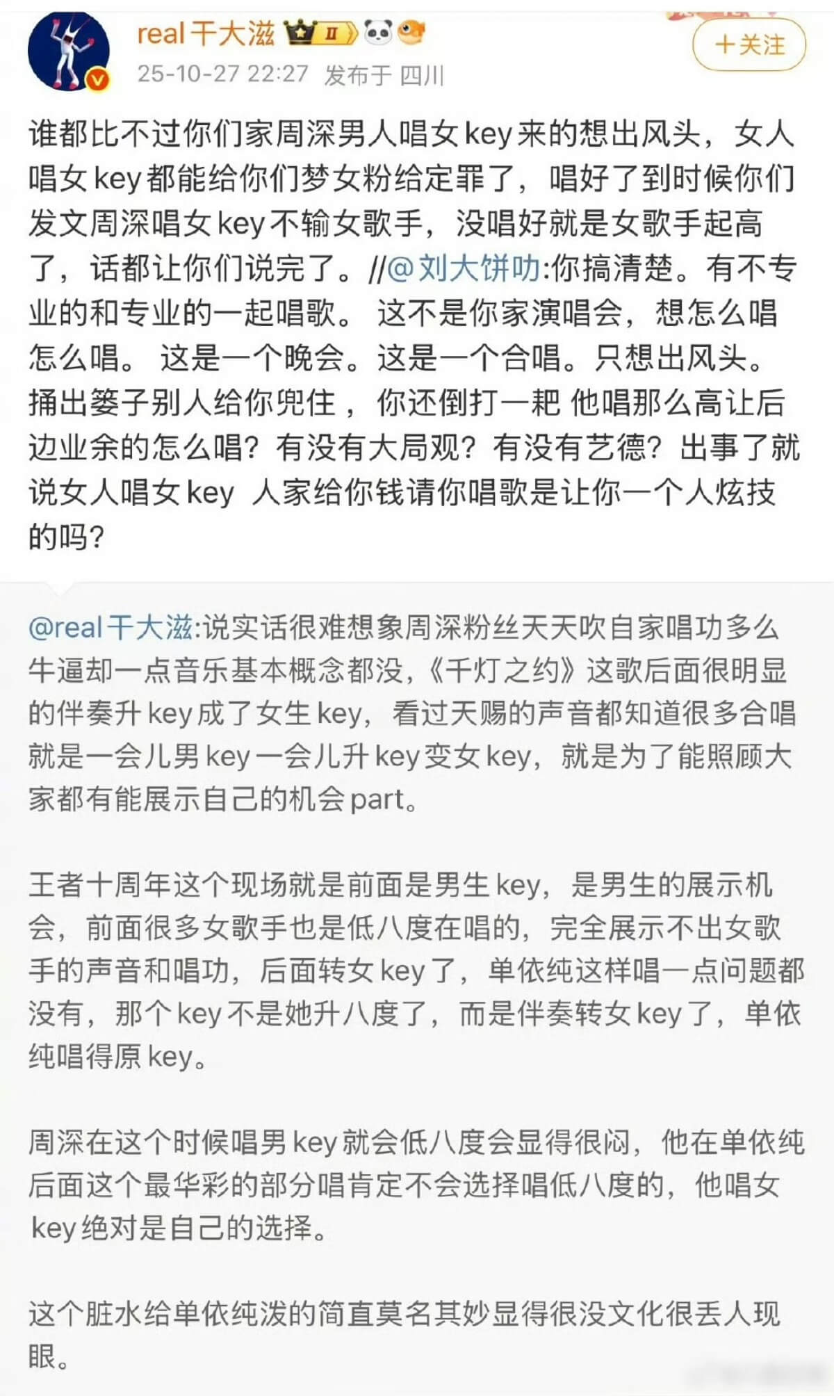 部分周深粉絲質疑單依純「擅自升key」,導致周深被迫接高音,認爲此舉存在惡意,幸好周深「救場」成功。單依純方則譴責周深方亂炮轟,兩方進行了「激烈交流」!