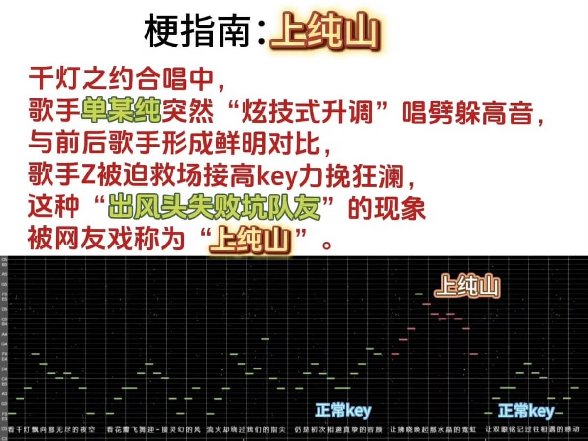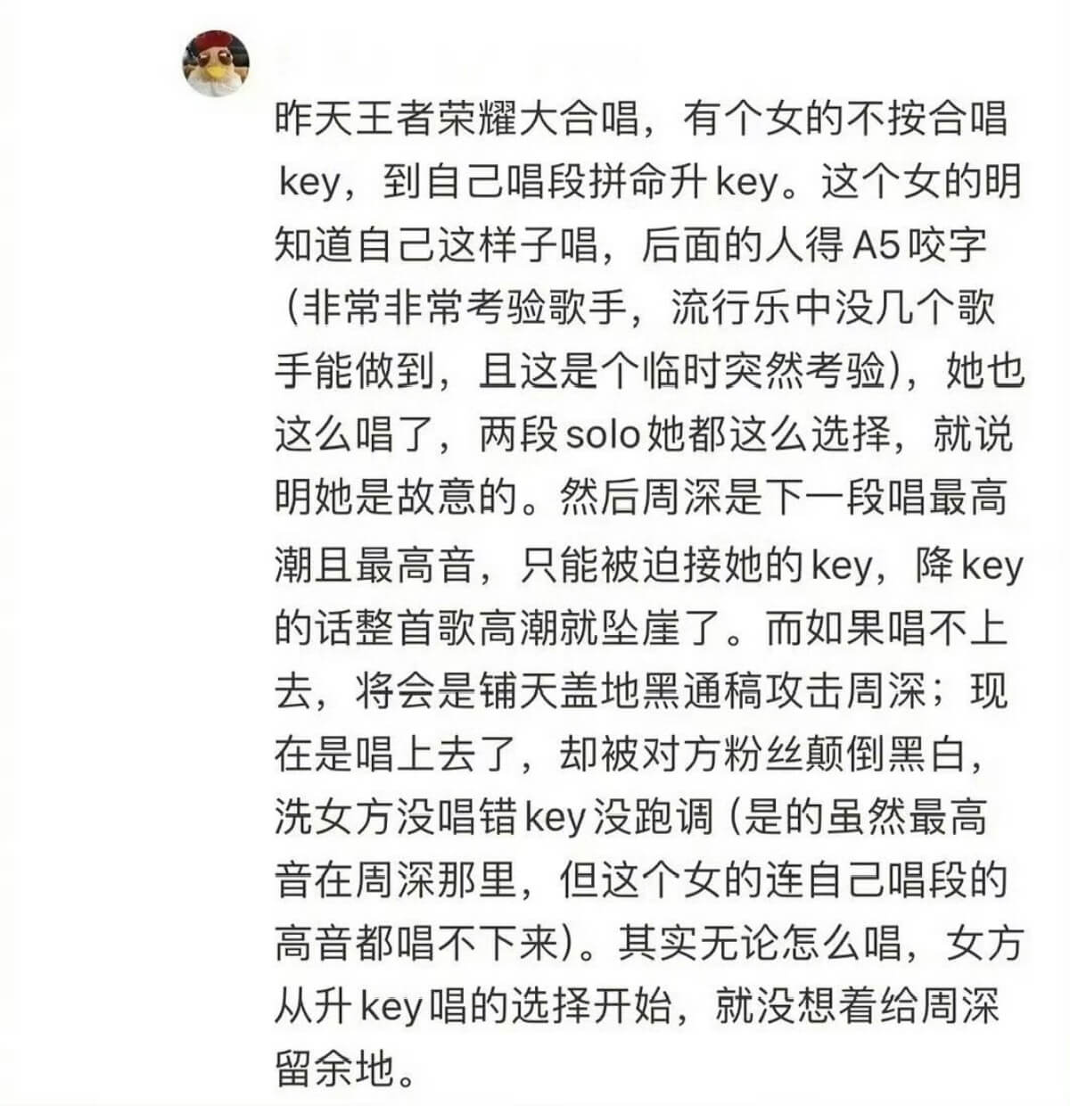 事情的起因,是因為兩人在合唱遊戲十週年主題曲《千燈之約》時,單依純採用高八度女調(原曲B小調),隨後周深接唱時延續相同音高(A5)。