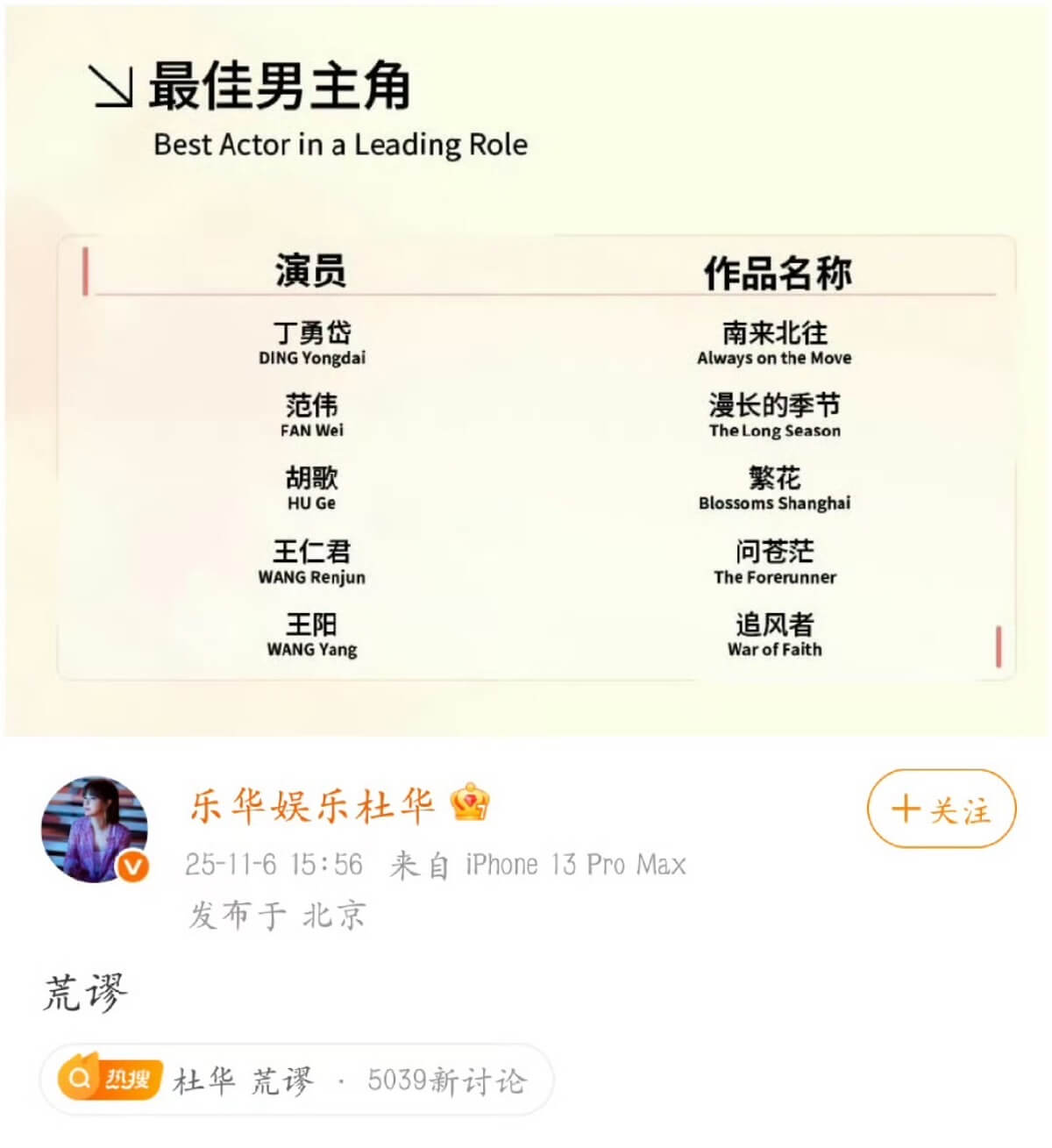 還有原本屬於《追風者》男主的王一博,卻被男二王陽用男主身分報名戲劇獎,但樂華皆無站出來為王一博維權。