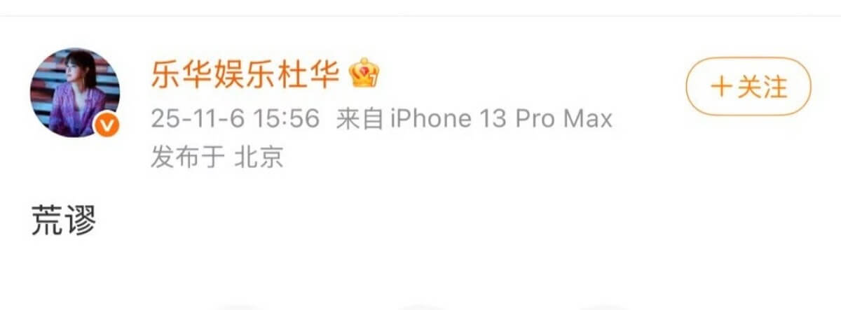 而樂華大佬杜華也出來維穩,發了兩個字「荒謬」回應續約問題👇