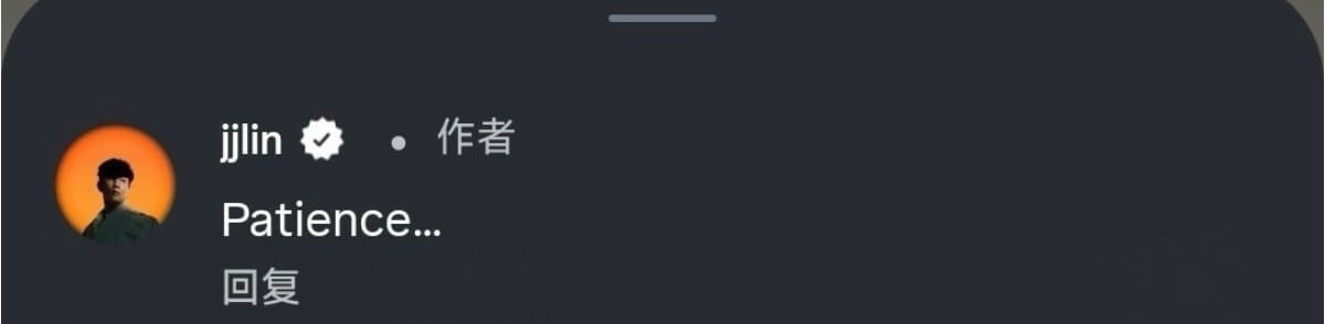 隨後又在評論補充:「耐心… 」這是在回應戀情嗎?