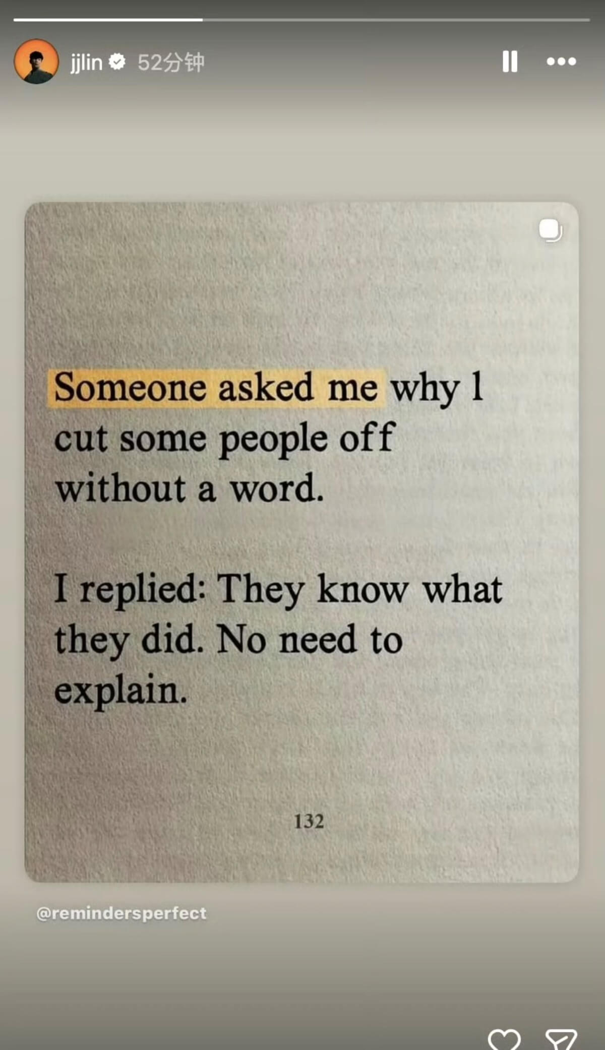 隨著熱議,林俊傑更新快拍,配圖上寫著:「有人問我為何悄無聲息地與某些人斷絕來往。我答道:他們心知肚明,無需多言。」