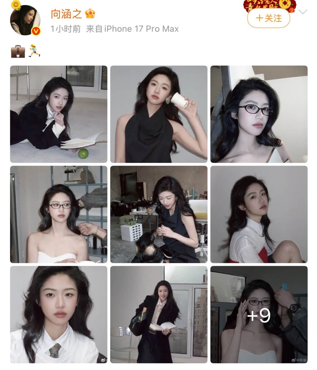 隨著戀情曝光,向涵之沒有直接回應,但發了18宮格照片,配上表情符號:「💼🏃♀️」,網友解讀是「包跑」👇