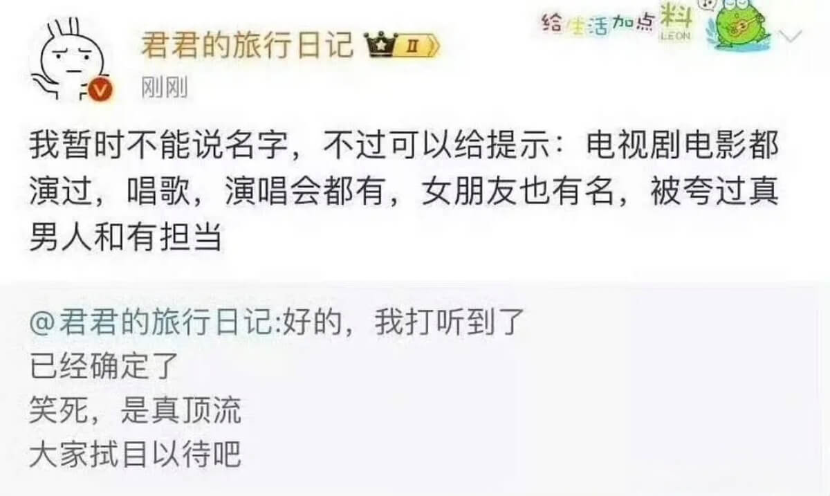 另外,網友也扒出早有狗仔在預告,表示有真頂流玩得很花👇