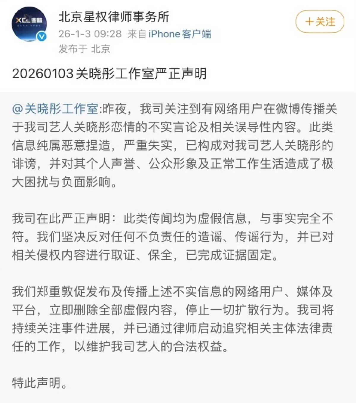 不管關曉彤還是王安宇,都立刻發聲明闢謠👇