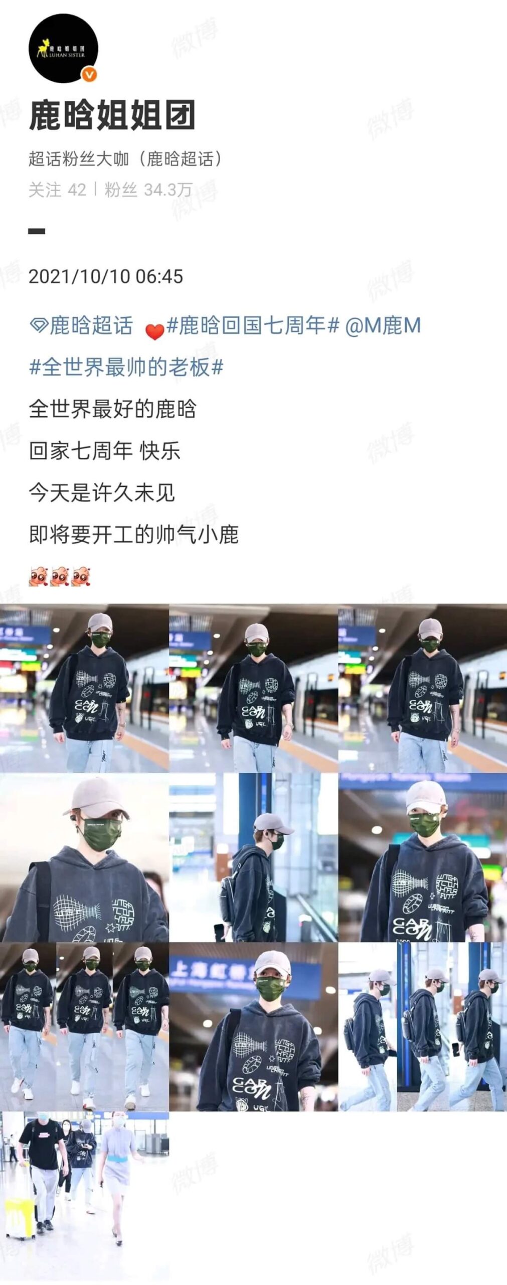 褲子也和鹿晗自己發的照片對上了👇