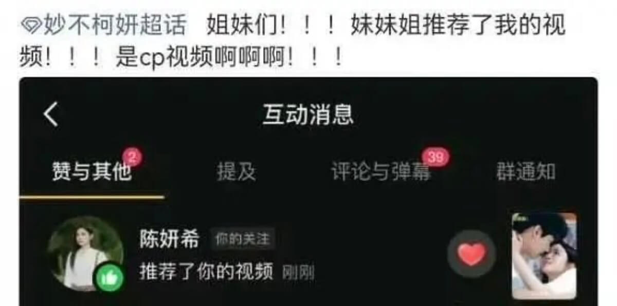 戲劇新聞 救命!陳妍希推薦和周柯宇真人CP向影片!影片配文「太直接」被罵瘋! By 飯圈第一追星大戶 On Jan 5, 2026 Share 陳妍希這是手滑了嗎?是噠,都知道周柯宇、陳妍希主演的《狙擊蝴蝶》很出圈,被稱小刀鋸大樹,播出了S+偶像劇的效果! 不僅劇內出圈,也有很多網友嗑起了這一對相差19歲的真人CP,之前陳妍希看演唱會穿的外套,就被指和周柯宇同款~ 沒想到的是,陳妍希近日又被發現,推薦了一支粉絲剪輯的真人向CP影片👇 雖然是用了電視劇中的片段,但是當中配文似乎很明顯,就是在嗑真人CP! 在引起關注之後,周柯宇粉絲紛紛下場狂罵陳妍希帶風向! 隨後,陳妍希被發現取消了點讚~ 圖來源:部分照片取自網絡,若侵權請告知 Share