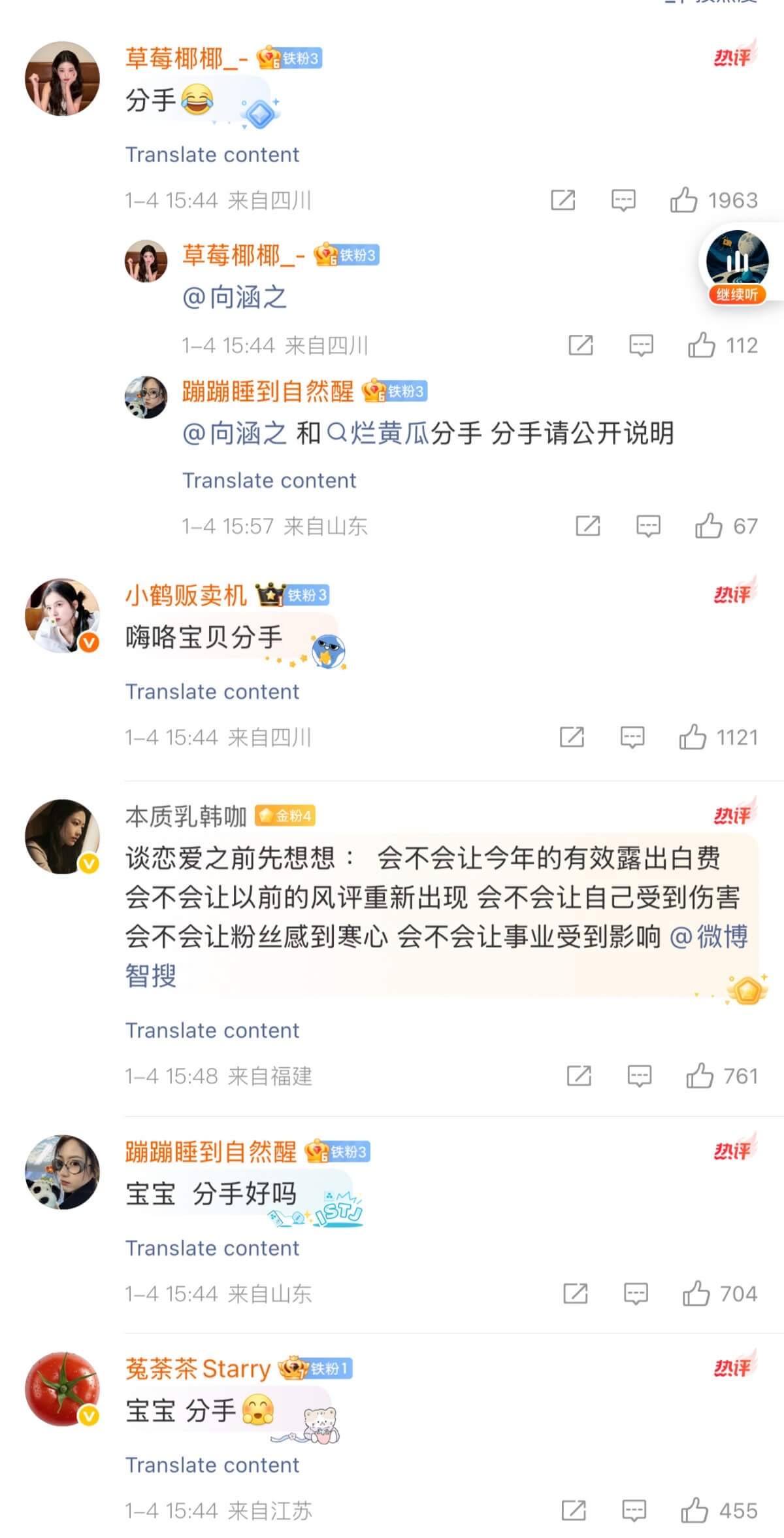 向涵之事發之後,更新了微博,評論區都讓她分手👇