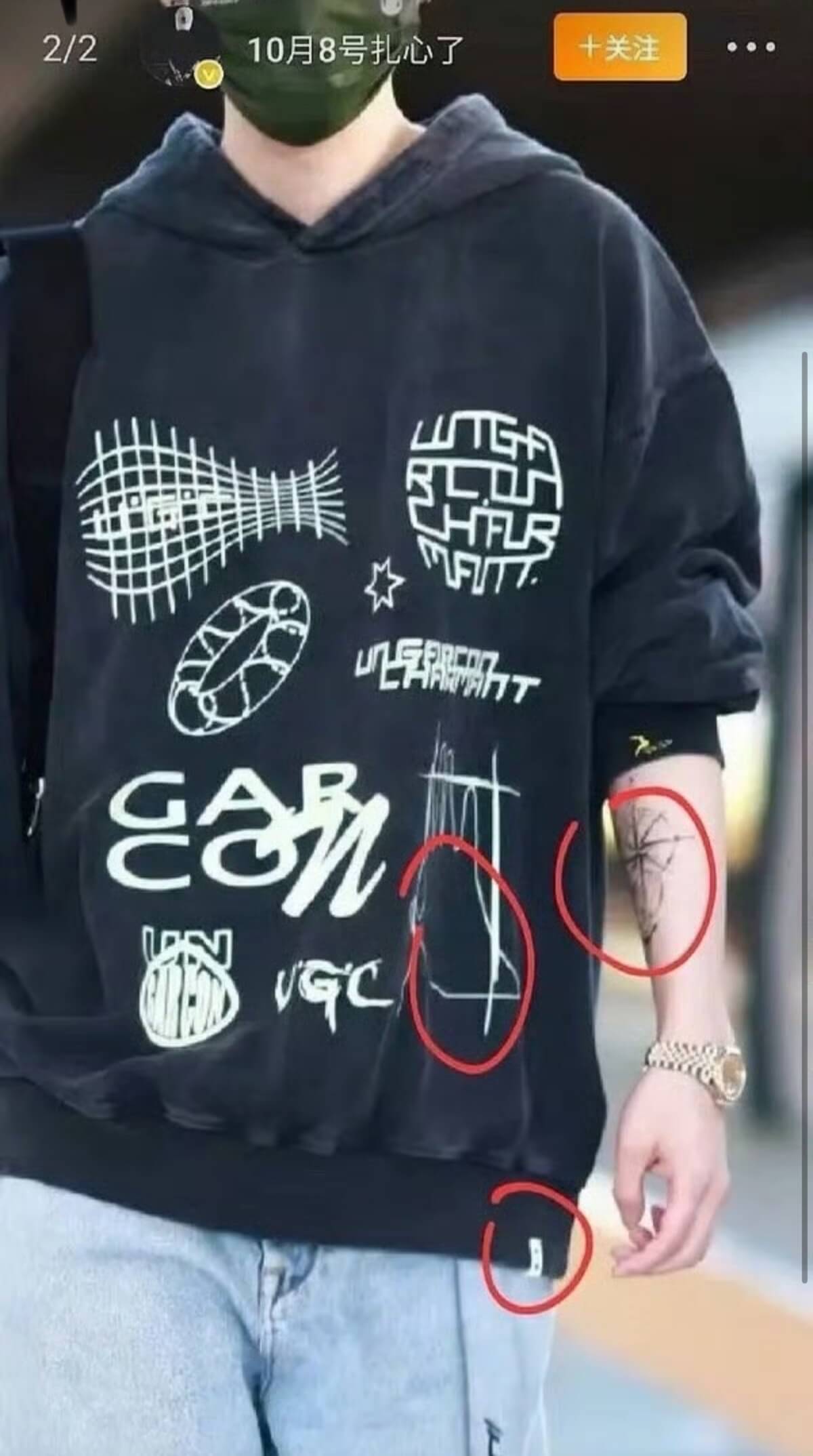 最搞笑的是,司曉迪發出來的親密照,雖然都沒有露出鹿晗的臉,但網友們先是憑著同款衣服和紋身,扒出應該是鹿晗👇