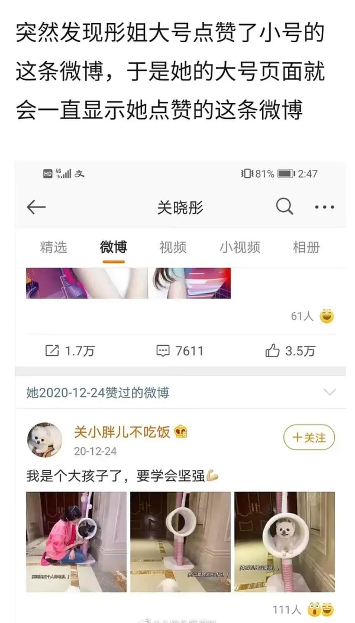 這則帖文現在再次被考古,認為關曉彤直接用了大號點讚,至今還保留著,肯定意有所指👇
