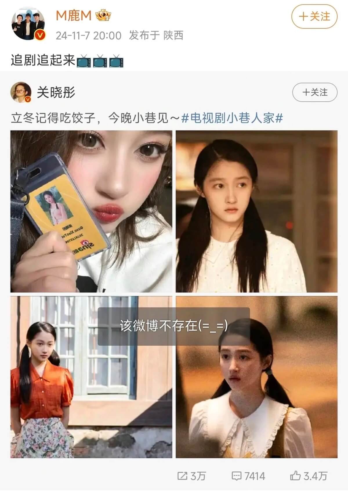 另外,鹿晗在24年曾罕見的幫關曉彤宣傳電視劇,結果才發了不久,就被刪除了!