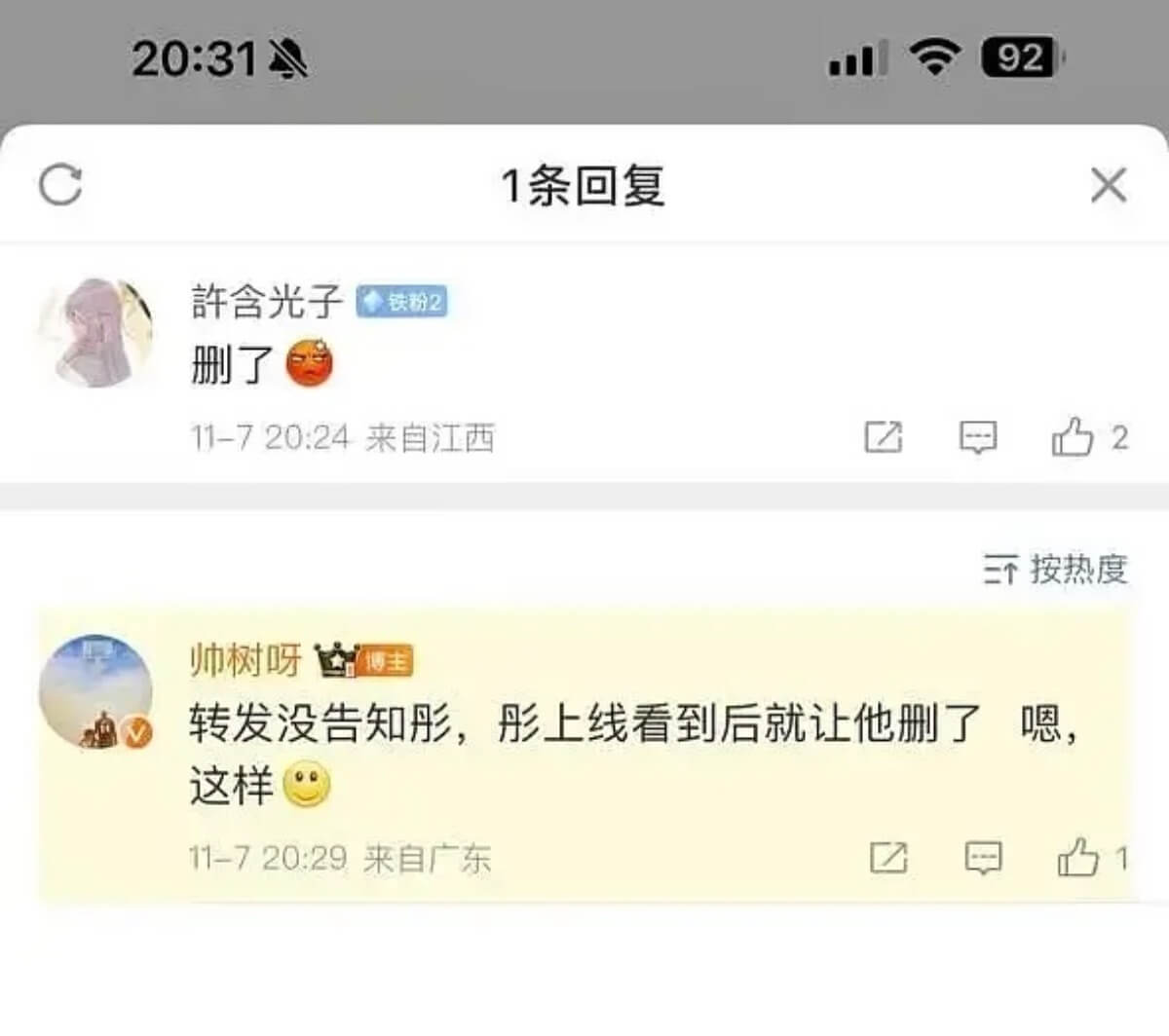 當時就有大粉表示,是關曉彤讓他刪除👇