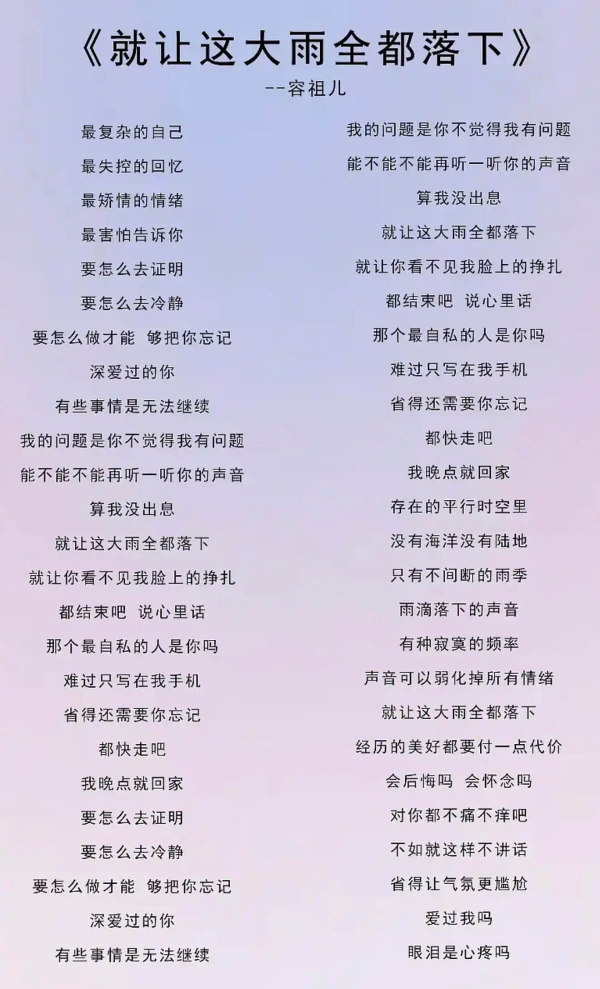 而關曉彤也在綜藝中,自曝24年曾反復聆聽失戀情歌《就讓這大雨全部落下》👇