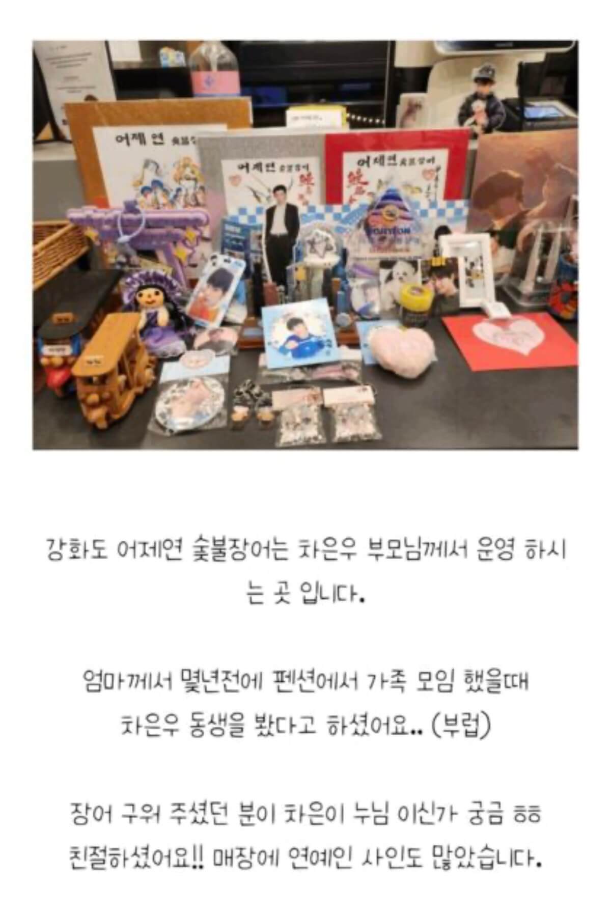 這家聲稱經營娛樂相關事業的公司,其所在地卻是車銀優父母經營的餐廳!不少粉絲都曾來這裡打卡,據悉在店裡烤鰻魚的,還是車銀優姐姐👇