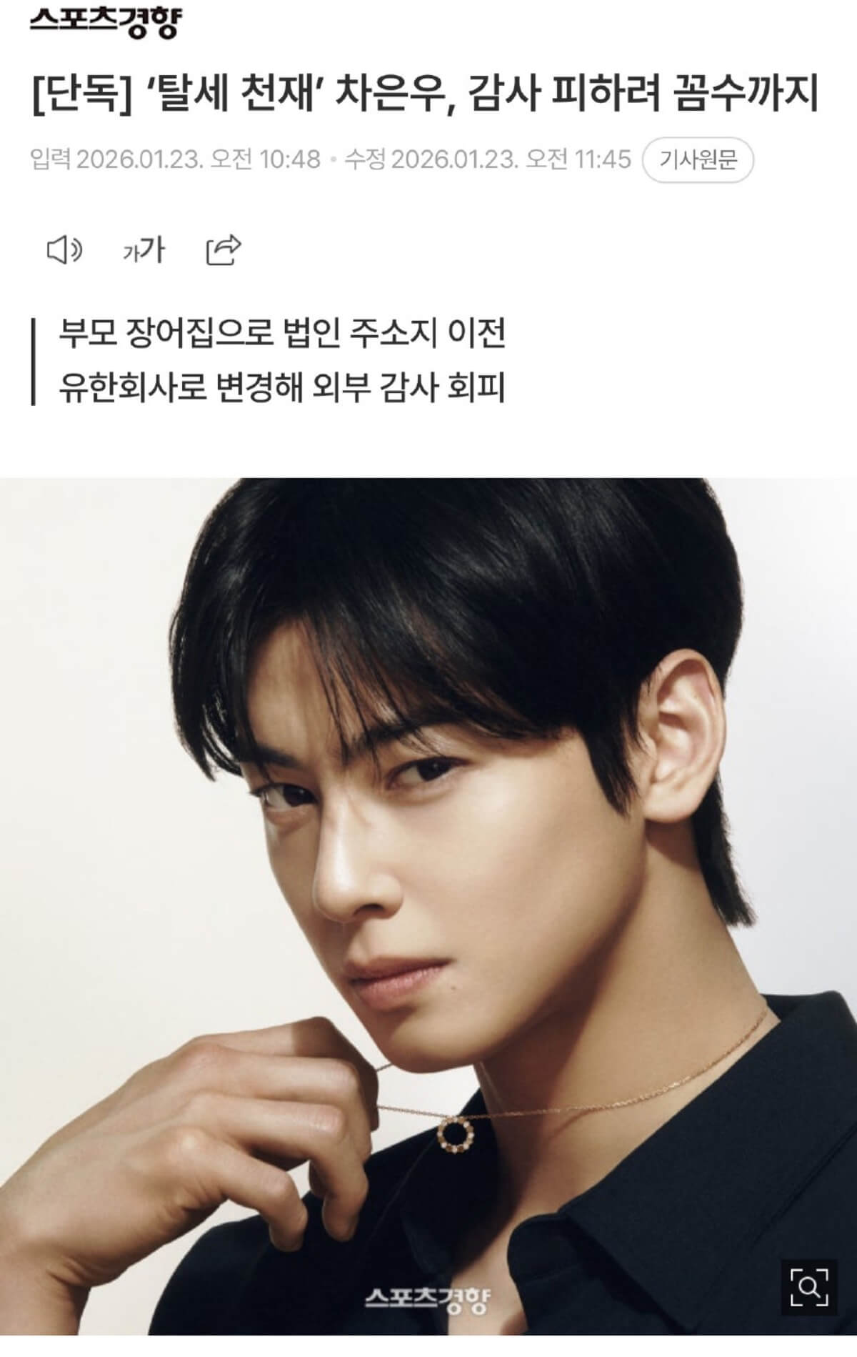 但根據韓媒Sports京鄉獨家報道,車銀優逃稅的方式千變萬化,當中包括了 ①變更法人性質 ②遷址至稅收優惠地區 ③註冊地址不實 ④轉移個人收入。