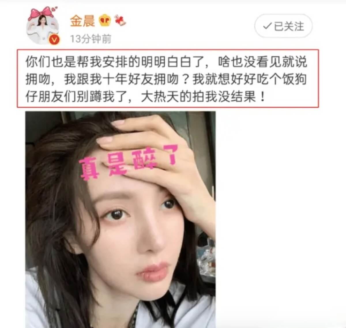 但隨即金晨半夜就發文回應,表示和對方是10年好友,譴責狗仔造謠!