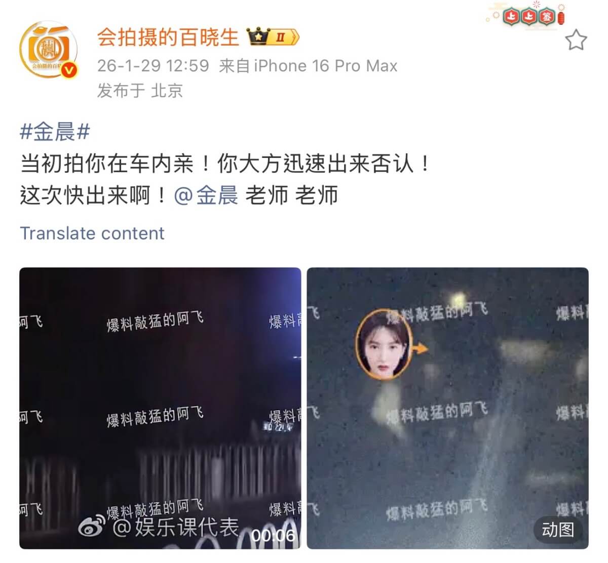 這位狗仔早在五年前,也曾拍到金晨戀情!當時狗仔拍到金晨和一光頭男士疑似喝醉,上車後在車內接吻👇