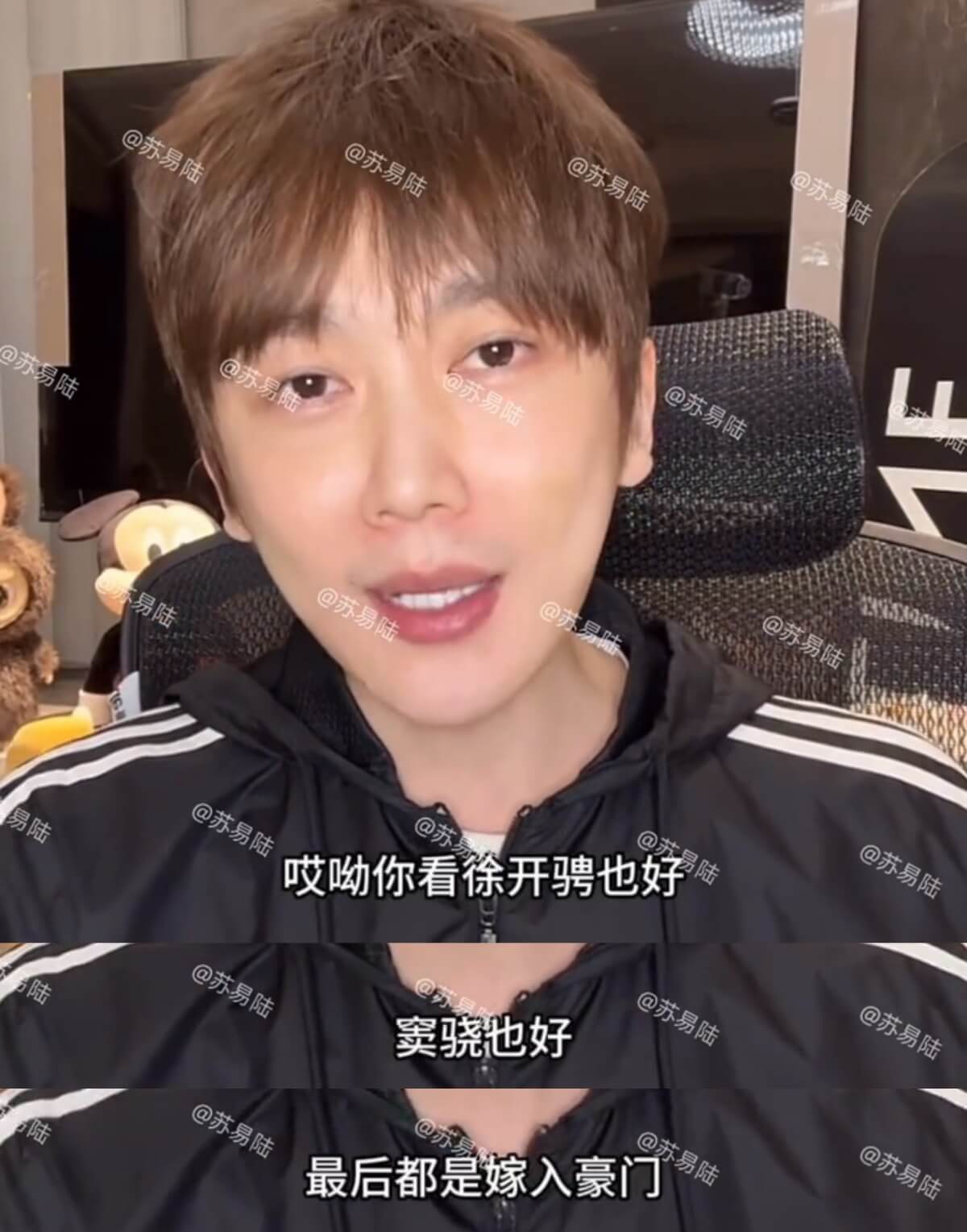 李登科直播原話:「就今天早上大家不是看到,不是說那個徐開騁有小孩的事情嗎,然後好多圈裡狗仔就說徐開騁現在是跟某個芒果的這個富婆製片人在一起,哎喲你看徐開騁也好、竇驍也好,最後都是嫁入豪門!」