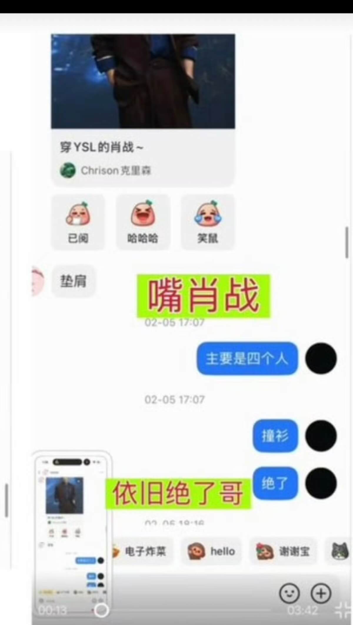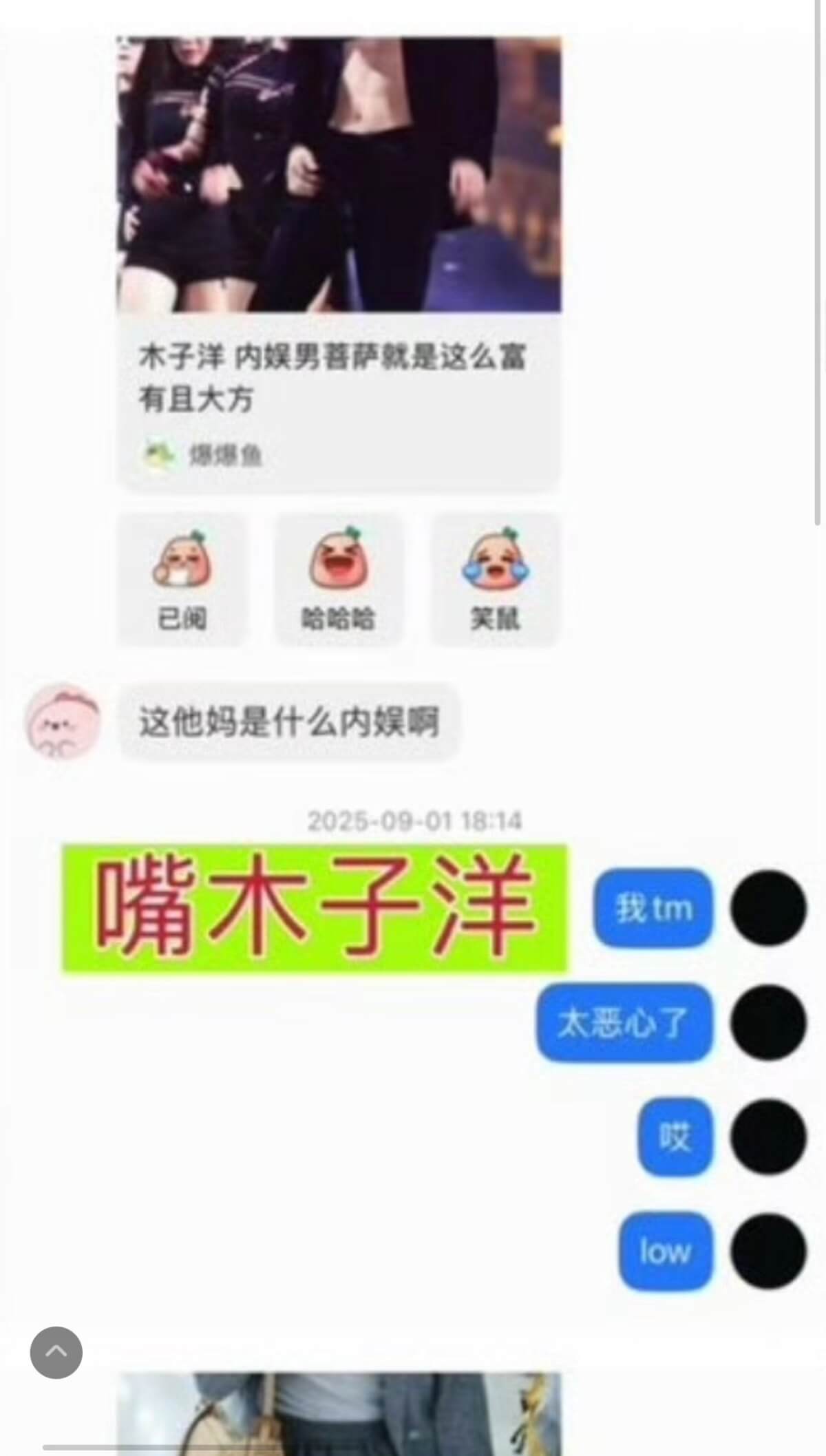 來看看所謂的聊天截圖,當中顯示了所謂王一博和綦美合討論多位藝人的聊天,當中包括了合作《陳清令》的肖戰👇