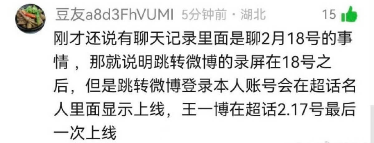 粉絲也扒出多項不合理之處,包括了所謂的上線時間等,王一博微博最後上線時間是2.17,但聊天記錄卻有2.18跳轉微博的顯示👇