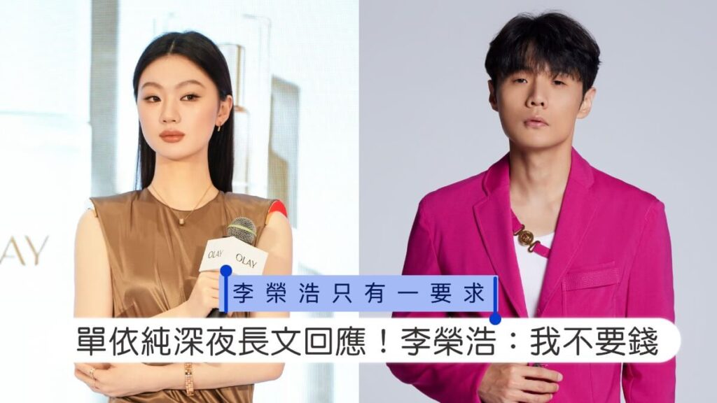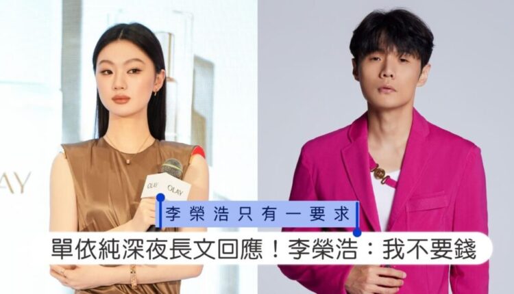 李榮浩則在38分鐘後火速回應,表示只要後續他和家人不再遭到單依純粉絲的惡意謾罵,他將不會主動再提,並回絕了單依純提議的版權費賠償。不過針對網路謾罵,他強調將保留追究的權利。