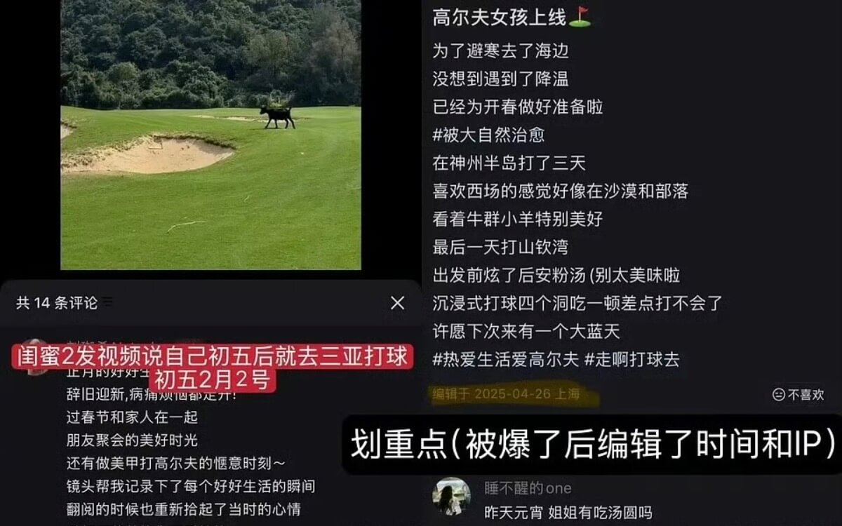 另一個閨蜜2也發過同時期去三亞的帖文,被分享之後編輯了地點和時間👇