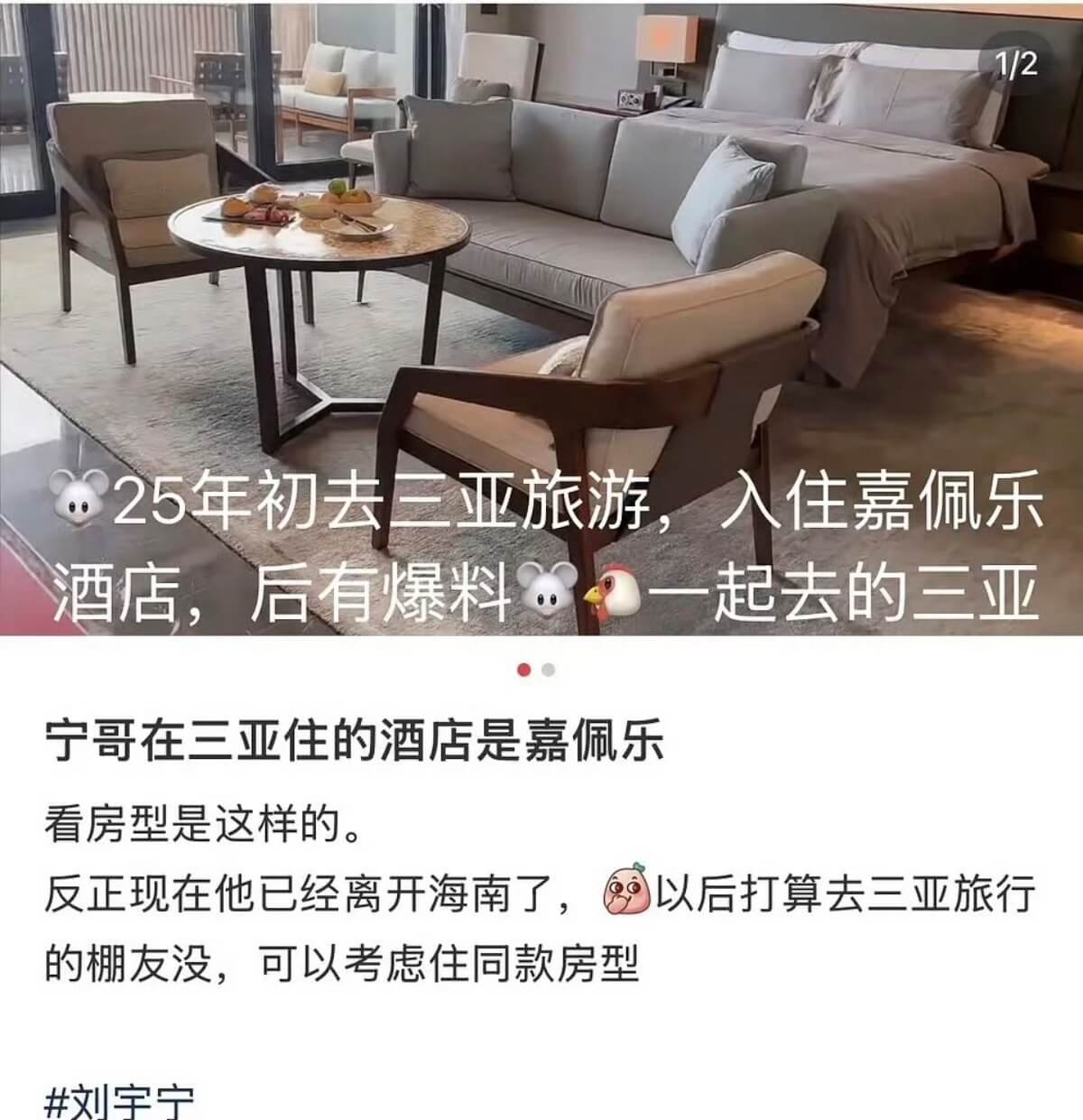 這兩人之間有很多巧合,包括之前曾傳過兩人在同一時期去了三亞度假,當時有粉絲發過劉宇寧在三亞住的酒店👇