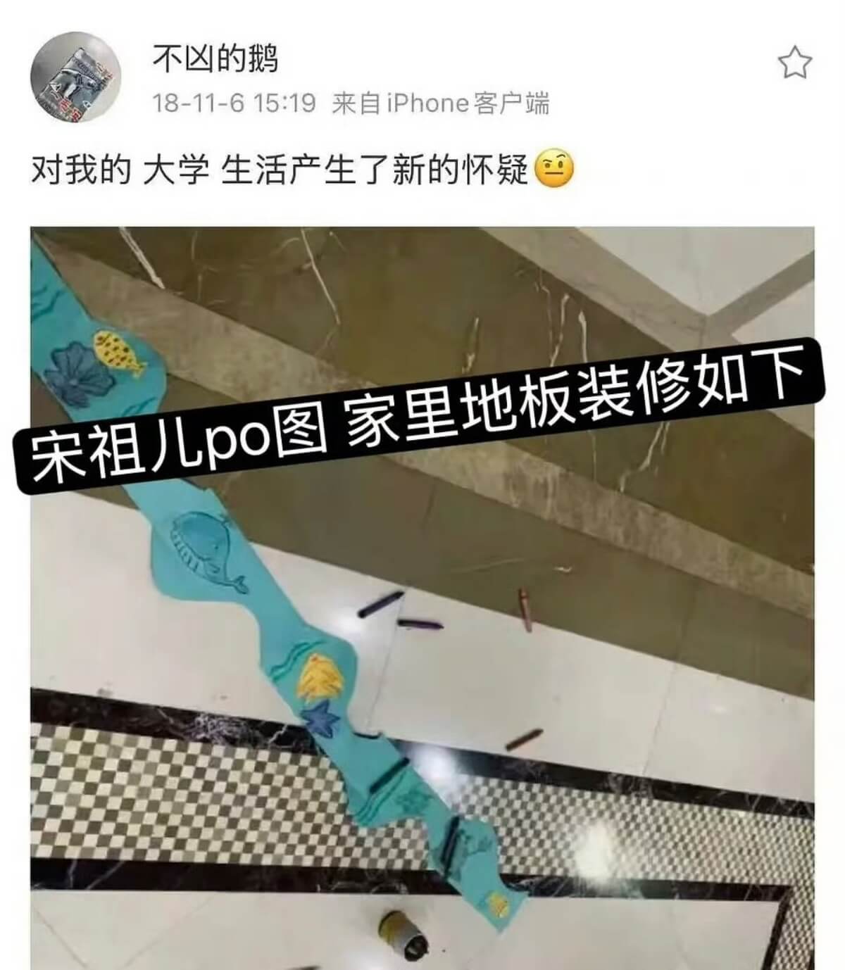 雖然但是,事情怎麼又有後續?是噠,有網友又開啟福爾摩斯模式,發現了“細節”?來看看,這是宋祖兒2018年在公開小號分享過的家,留意一下照片中的地板裝修👇