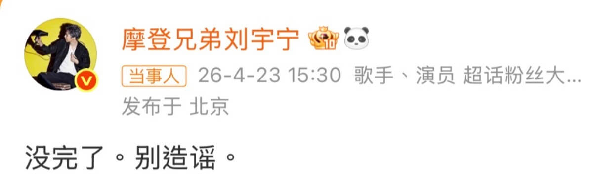 但這次又被曝光戀愛證據,劉宇寧在23號下午發文,6個字強勢回應:「沒完了,別造謠。」直接堵死一切後續可能⋯